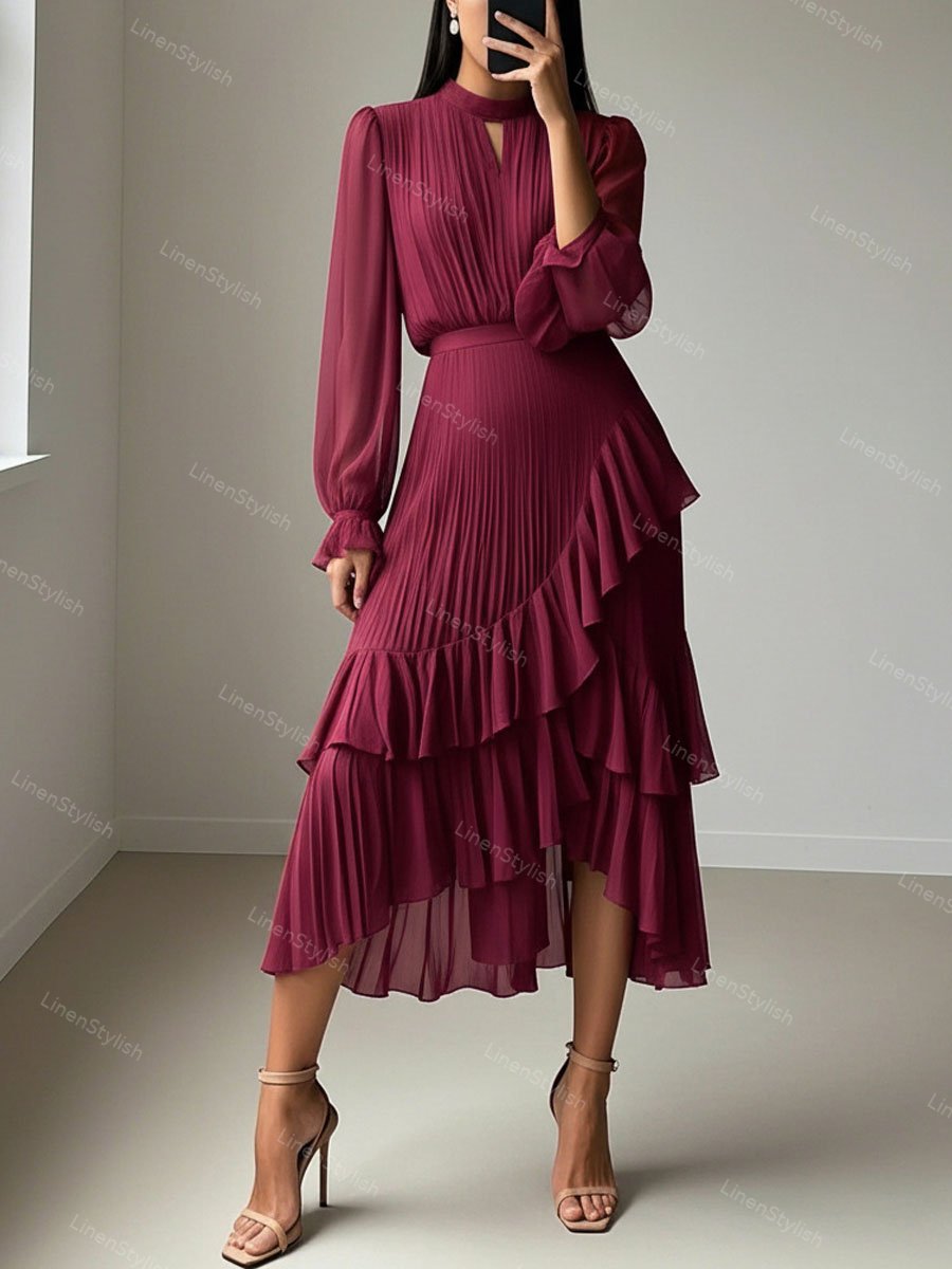 Solid Ruffle Pleated Elegant Dress